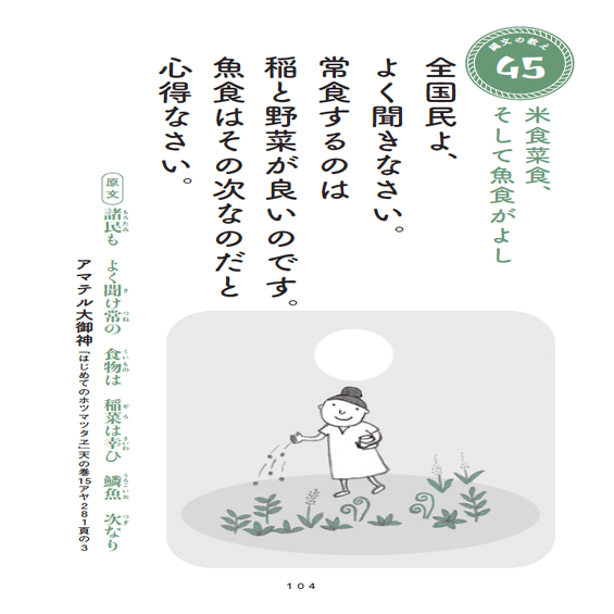 『みけよろつなりそめのアヤ』ホ15のタイトル通り、十五アヤは、食べ物に関する大御神の教えを綴った古代長寿法の伝授のアヤです。その中に、
